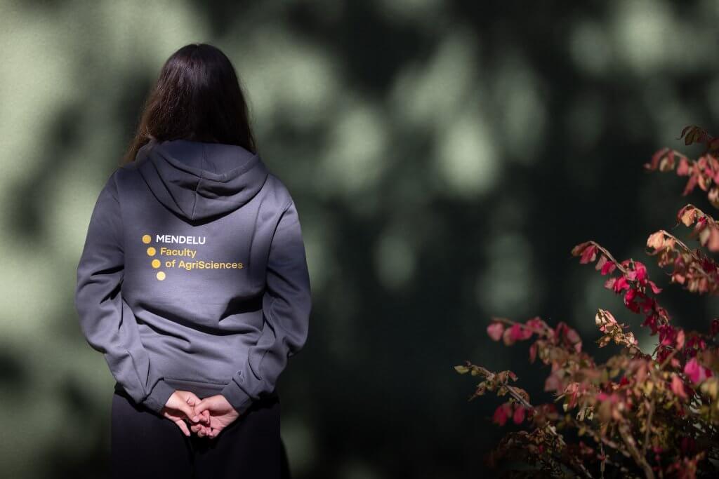 Mikina AF antracit / potisk tečka M / na zádech logo Faculty of AgriSciences